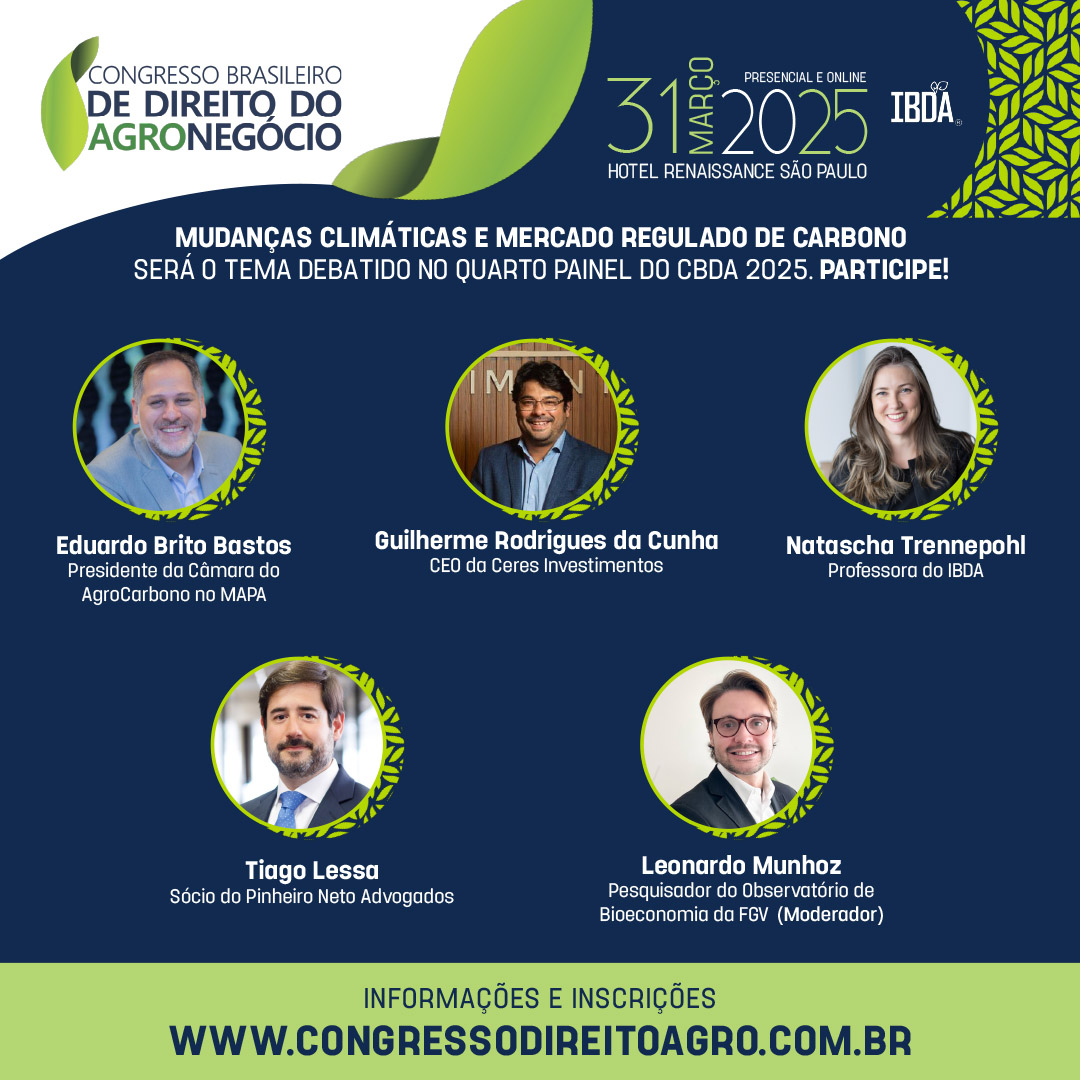 Uma das principais pautas da agenda ESG, o mercado de carbono ganhou novo impulso com a regulamentação no Brasil. Devido à importância do tópico, ele será o tema de um dos painéis da 5ª edição do Congresso Brasileiro de Direito do Agronegócio, realizado pelo Instituto Brasileiro de Direito do Agronegócio – IBDA.